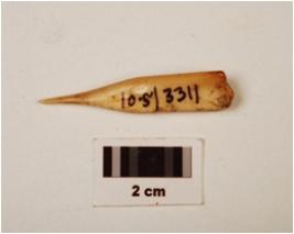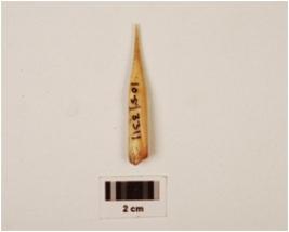 | Description / विवरण | A borer made on bone with polished surface, pointed tip, broken at one end, chemically treated. |