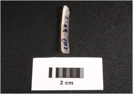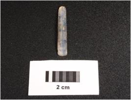 | Description / विवरण | Parallel sided microlithic blade with prominent mid ridge on dorsal and use wear marks on cutting edge. Triangular in section. |