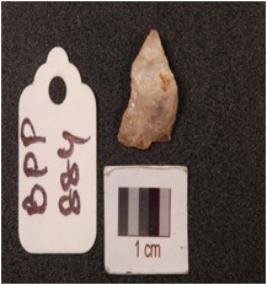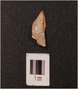 | Description / विवरण | End scraper on side struck quartz flake with use-wear marks along cutting edge. |