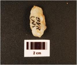 | Description / विवरण | A quartz flake with uneven edges and flake scars on the surface. |