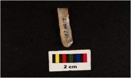 | Description / विवरण | Parallel sided microlithic blade with use wear marks on cutting edges and double ridge on dorsal. Trapezoid in section and diffused bulb on proximal end. |