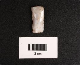 | Description / विवरण | Parallel sided blade with two ridges on dorsal side, trapezoidal in section, use wear marks on cutting edges and ripple marks on dorsal side. |