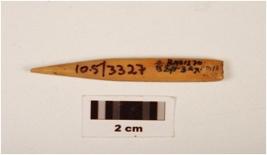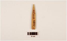 | Description / विवरण | A bone point with polished surface, pointed tip, broken at one end. |