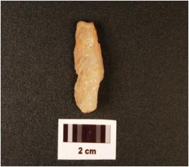 | Description / विवरण | Quartz side scraper, prepared platform, diffused bulb at distal end, visible cortex and uneven surface. |