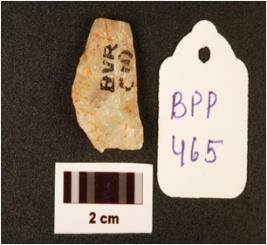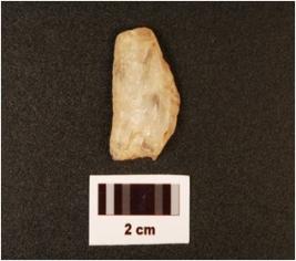 | Description / विवरण | A quartz side scraper, prepared platform and prominent bulb. |