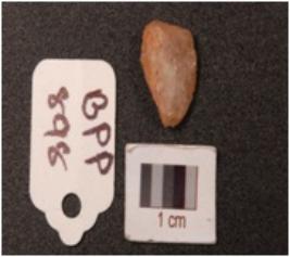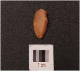 | Description / विवरण | A side scraper on quartz flake with cortex on dorsal side, partly broken and use-wear marks along cutting edges. |