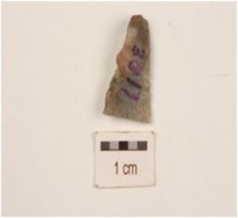 | Description / विवरण | A blade made on chert end struck flake, partly retouch cutting edges, prepared platform flake scars on dorsal side and use wear marks. |