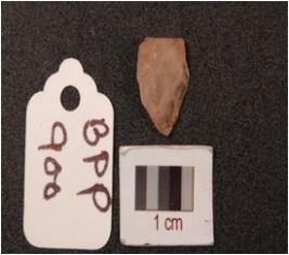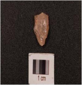 | Description / विवरण | A fragment side scraper on quartz, with diffused bulb on ventral side, side struck and partly broken along one end. |