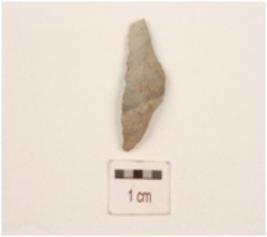 | Description / विवरण | A side scraper made on end struck chert flake, partly retouch cutting edge, prepared platform diffuse bulb on ventral side and flake scars on dorsal side. |
