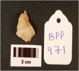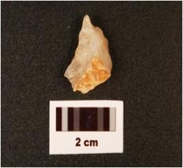 | Description / विवरण | A quartz scraper cum borer, visible cortex and flake scars on the surface. |