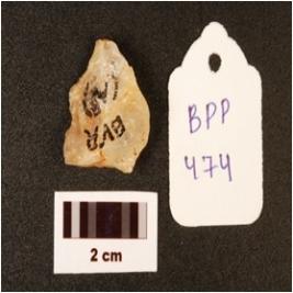 | Description / विवरण | A quartz side scraper, prominent bulb and prepared platform. |