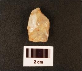 | Description / विवरण | A quartz end scraper with prepared platform. |