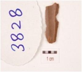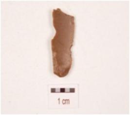 | Description / विवरण | A chert blade made on end struck flake, double ridge on the dorsal side, prominent bulb on the ventral side, prepared platform distal end intact and wear marks on the cutting edge. |
