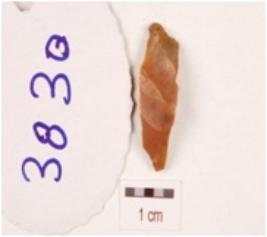 | Description / विवरण | A chert blade flake scars on the dorsal side, bulb on the ventral side, prepared platfrom distal end intact and use wear marks on the cutting edges. |
