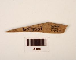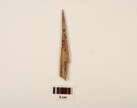 | Description / विवरण | A bone borer with polished surface, pointed tip, charred broken at one end. |