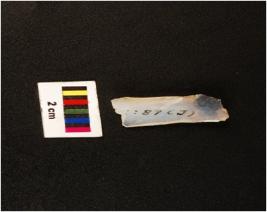| Description / विवरण | Blade with a flake scar on dorsal part, heated treated, diffused bulb on ventral side of the proximal end. One side working edge with use wear marks broken distal end. |