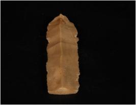 | Description / विवरण | Parallel sided blade on chert with single ridge on dorsal side, smooth ventral, triangular section and use wear marks on the cutting edge. |