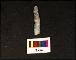 | Description / विवरण | Parallel sided microlithic blade with use wear marks on cutting edges and prominent mid ridge on dorsal, deffuced bulb on proximal end, it has triangular section. |