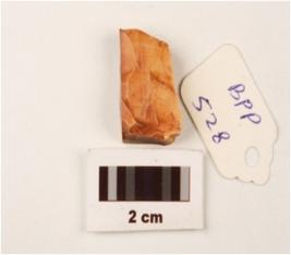 | Description / विवरण | Fragment of a chert core, flake scars on surface, 2 flake scars visible cortex on two sides and prepared platform. |