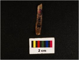 | Description / विवरण | Parallel sided microlith blade with use wear marks on cutting edges and prominent mid ridge on dorsal. Triangular in section and diffused bulb on proximal end. |