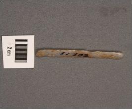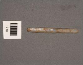 | Description / विवरण | Parallel sided blade, both ends are broken use wear marks on working edges, one ridge on dorsal surface, concave ventral surface. |