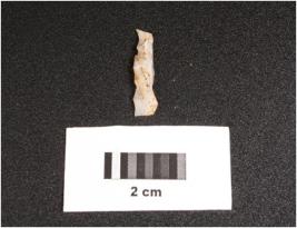 | Description / विवरण | Microlithic blade on chalcedony with prominent wavy ridge on dorsal, triangular in section, usewear marks along the cutting edges, diffused bulb. |