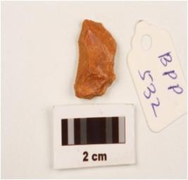 | Description / विवरण | A chert end scraper, flake scars on dorsal surface, prominent bulb and prepared platform. |