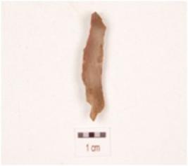 | Description / विवरण | A chert blade flake scars on the dorsal surface, prominent bulb on the ventral surface, prepared platform distal end intact and use wear marks on the cutting edges. |