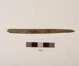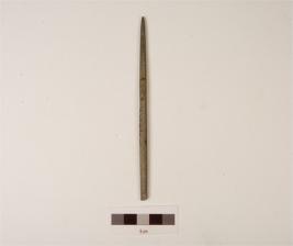 | Description / विवरण | A long stone knitter with polished surface and square in section, pointed one end other end broken. |