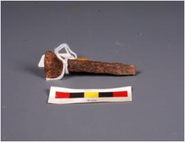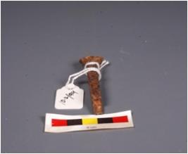| Description / विवरण | Broken piece of iron chisel, one end is flat and sharp, surface is rusted and head is broken. |