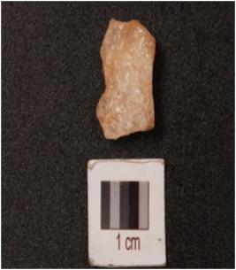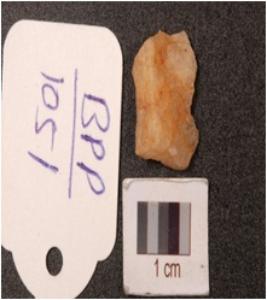 | Description / विवरण | A quartz flake with trapezoid shaped and cortex on dorsal sides. |