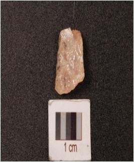 | Description / विवरण | A quartz flake, trapezoid in shaped. |