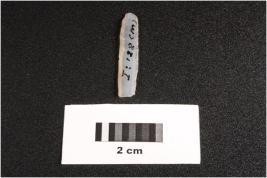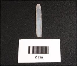 | Description / विवरण | Parallel sided microlithic blade with doulbe ridge on dorsal. Diffused bulb on proximal end. Trapezoid in section and use wear marks on cutting edges. Broken at distal end. |