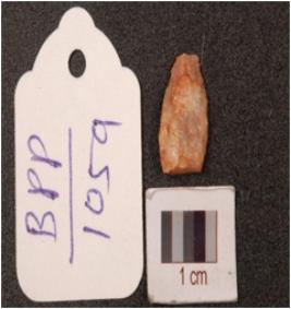 | Description / विवरण | A quartz flake with triangular shaped and cortex on dorsal sides. |