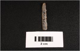 | Description / विवरण | Parallel sided microlithic blade with wavy midridge on dorsal. Use wear marks on cutting edges triangular in section. |