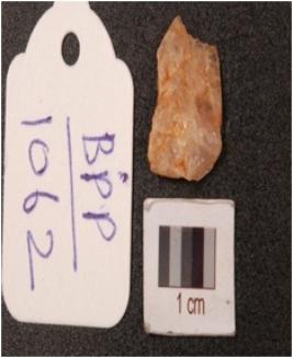 | Description / विवरण | A small quartz flake with irr-regular shaped. |