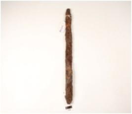 | Description / विवरण | A chisel made on iron point at one side, slightly broken, rusted surface, biconvex in section. |