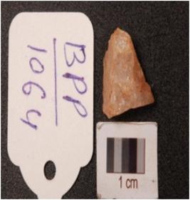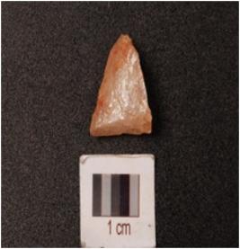 | Description / विवरण | A quartz flake with triangular shaped and cortex on dorsal sides. |