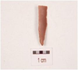 | Description / विवरण | A chert blaed ridge on the dorsal side, distal end intact and use wear marks on the cutting edges. |