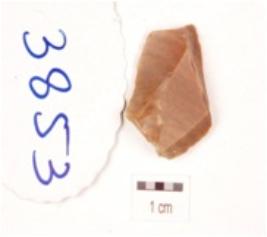 | Description / विवरण | A side scraper made on end struck chert flake, flake scas on the dorsal side, partly retouched wavy cutting edges, prepared platform bulb on ventral side. |