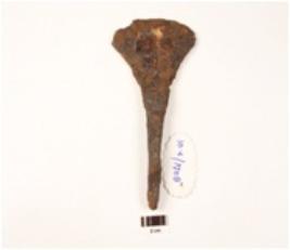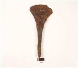 | Description / विवरण | A chisel made on iron pointed at one end broad and sharp edges on other end, rusted surface. |