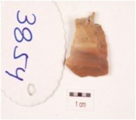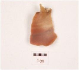 | Description / विवरण | A side scraper made on end struck chert flake, flake scars on the dorsal side, partly retouched, wavy cutting edges, prepared platform bulb on ventral side and distal end intact. |