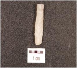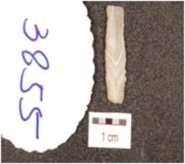 | Description / विवरण | A blade made on end struck quartz flake, ridge on the dorsal surface, prominent bulb on the ventral side, prepared platform, and use wear marks on the cutting edges. |