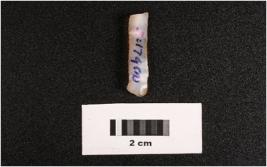 | Description / विवरण | Parallel sided backed blade with a prominent mid ridge on dorsal side, diffused bulb on ventral side, broken at distal end with triangular section. |