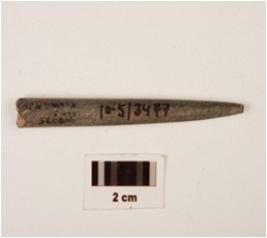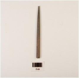 | Description / विवरण | A stone point with polished surface, circular in section and pointed one end other end broken. |
