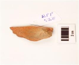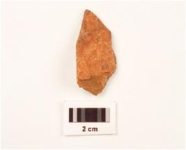 | Description / विवरण | A jasper end scraper, prominent bulb prepared platform and rough surface. |