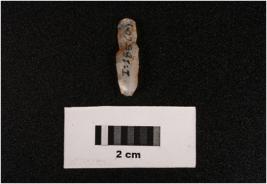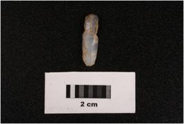 | Description / विवरण | Parallel sided microlithic blade with a prominent mid ridge on dorsal side, diffused bulb on ventral side, triangular in section and broken at distal end. |