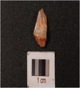 | Description / विवरण | A quartz small flake with slightly pointed at one end. |
