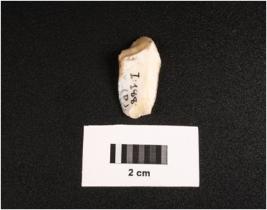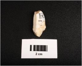 | Description / विवरण | Fragment of microlithic blade on unprepared core with mid ridge and flake scars on dorsal. Bulb on proximal end and cortex on distal end. Triangular in section. |