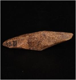 | Description / विवरण | Bone point with ridges and tapered on both ends, uneven shape, rough surface pointed ends and middle surface is thick. |